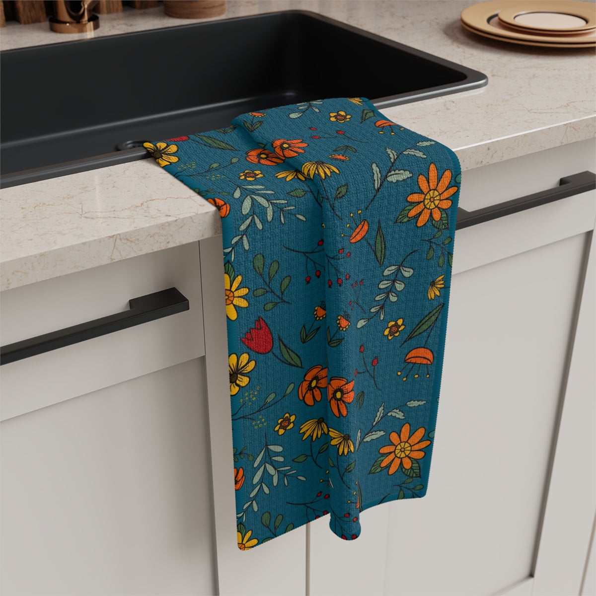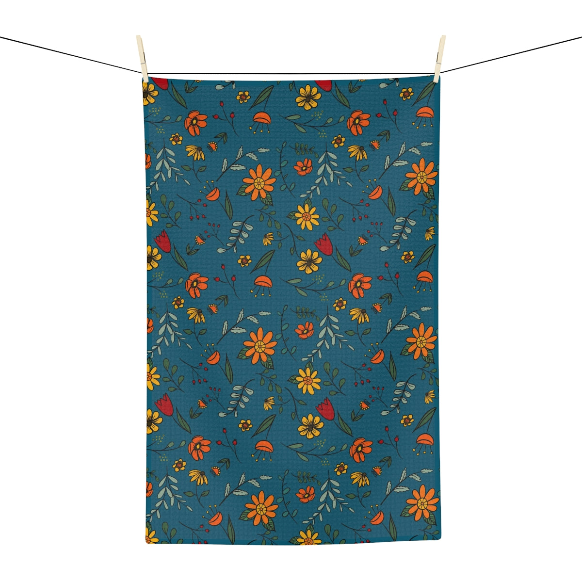 Autumn Floral - Turquoise Soft Tea Towel