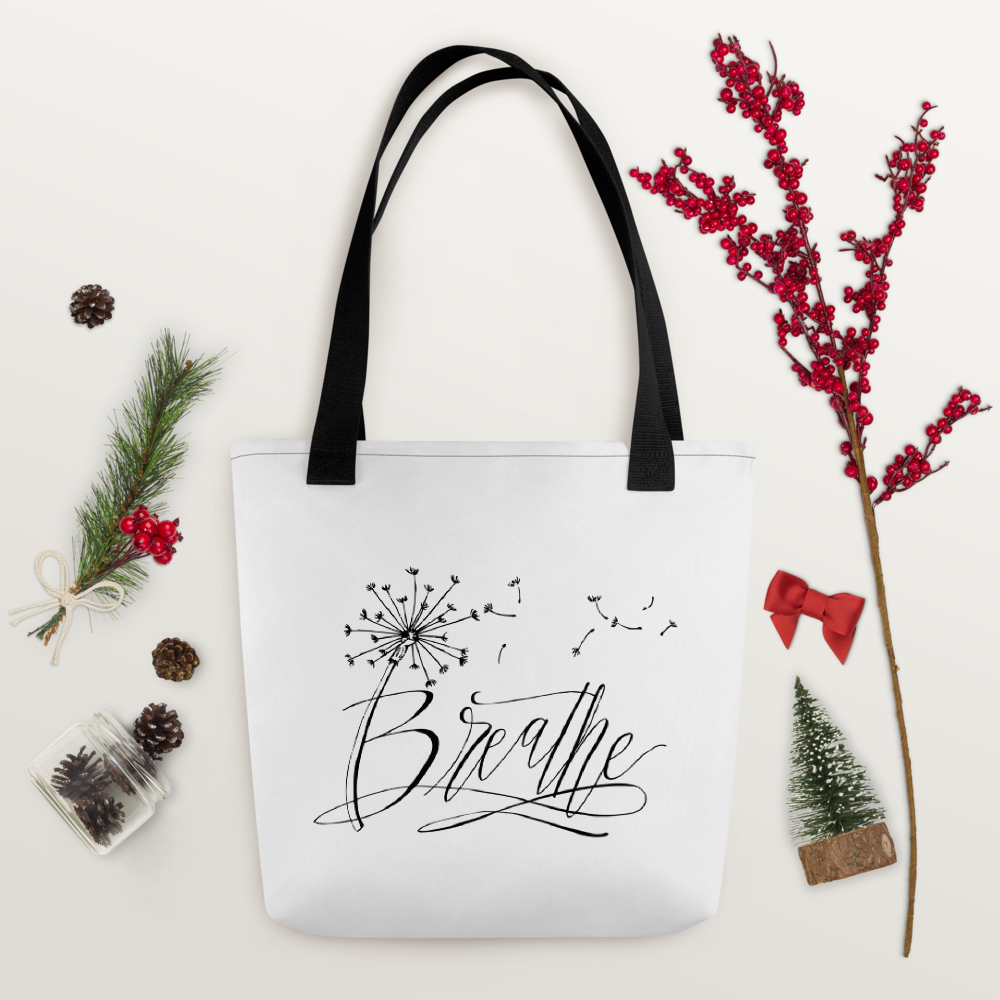 A spacious, reusable tote bag to help keep that gentle reminder close by while helping you carry all of the things throughout your day!