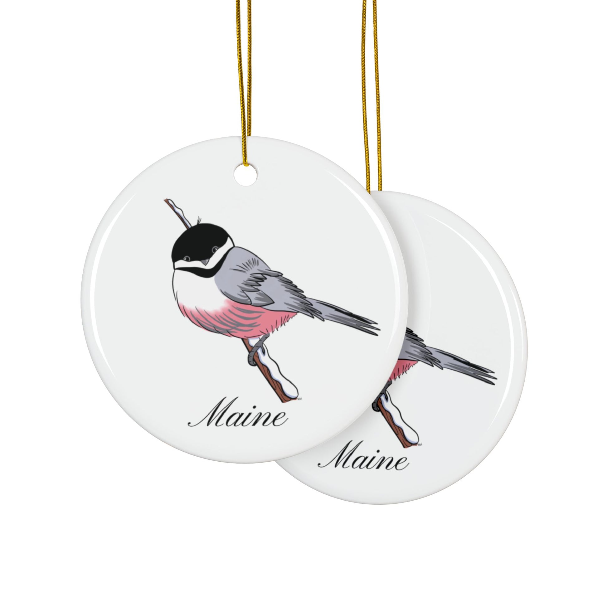 Maine Chickadee Ceramic Ornaments, 2-Side Print, (1pc, 3pcs, 5pcs, 10pcs)