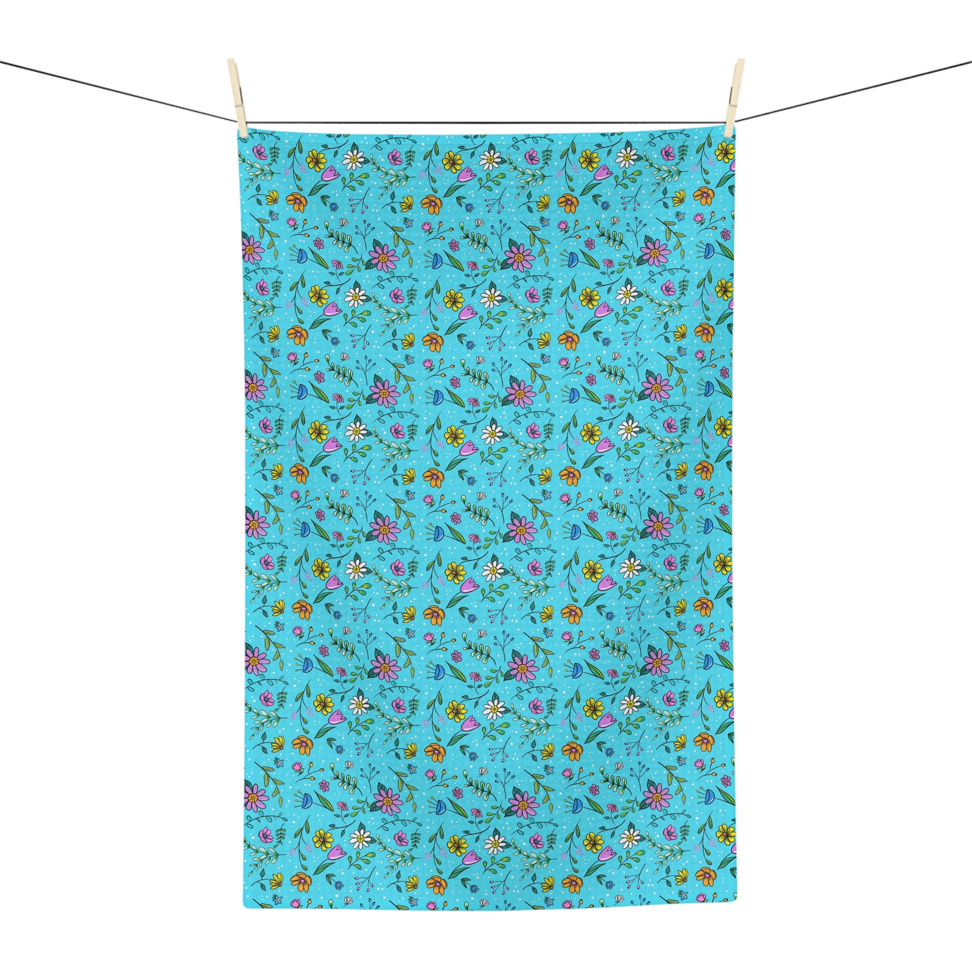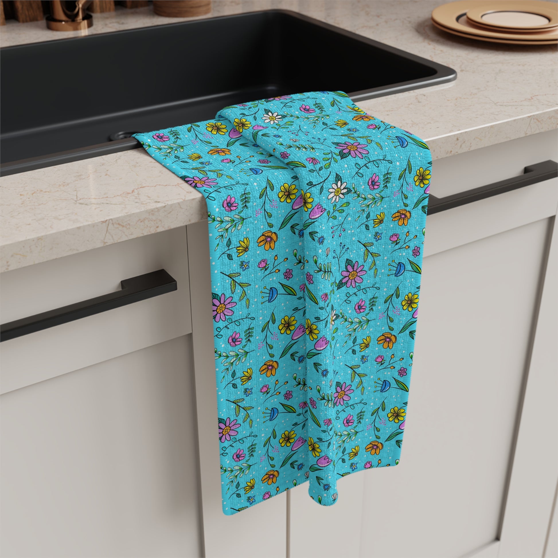 Spring Floral Toss - Aqua - Soft Tea Towel