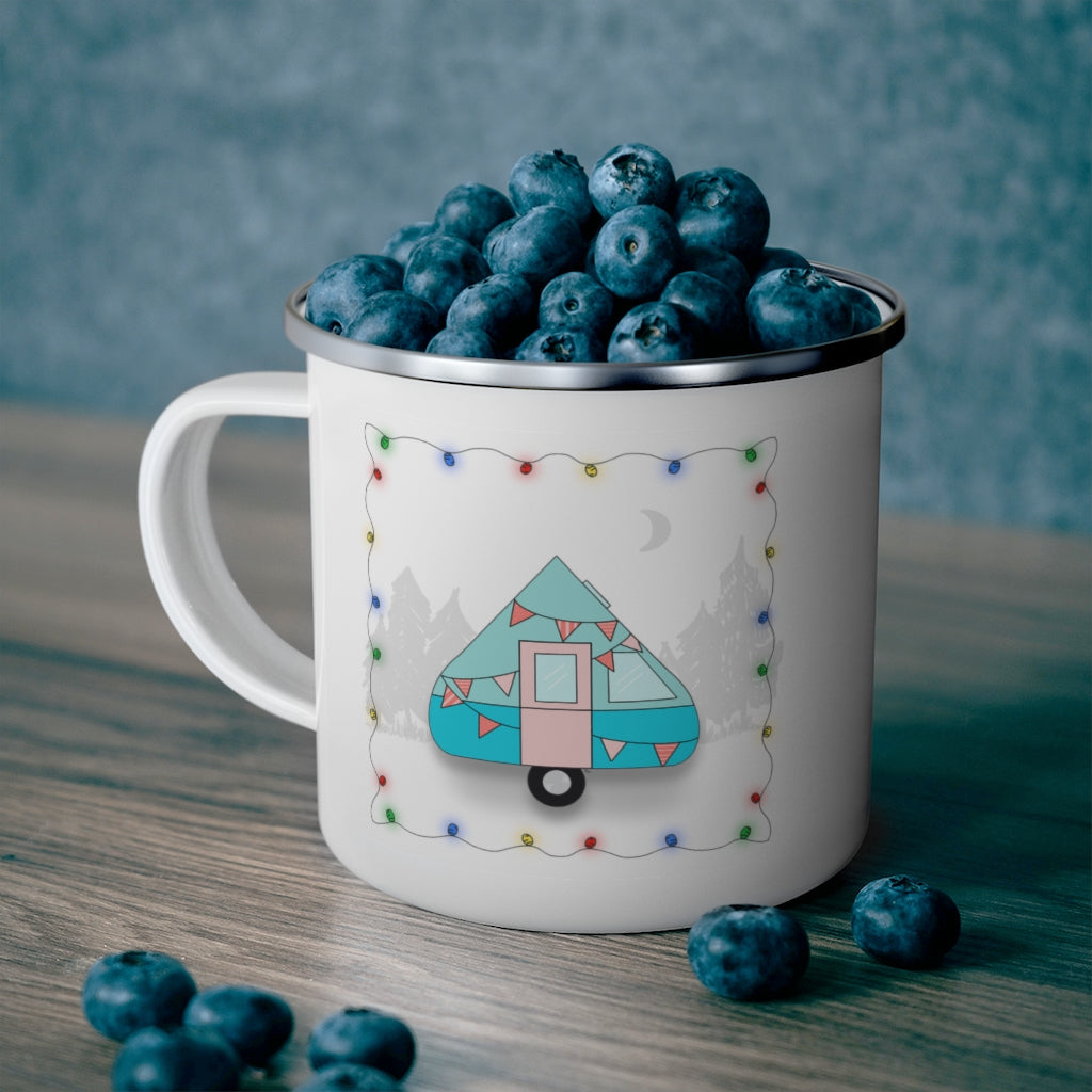Get your hands on this durable enamel mug that holds 12 ounces of your favorite beverage. Add a personalized touch to your camper life drinks! Great for indoors and outdoors activities as it can keep up with the dirt and grunge of campsites. This sturdy and stylish cup is perfect for coffee, tea or even your morning cereal in the wild.