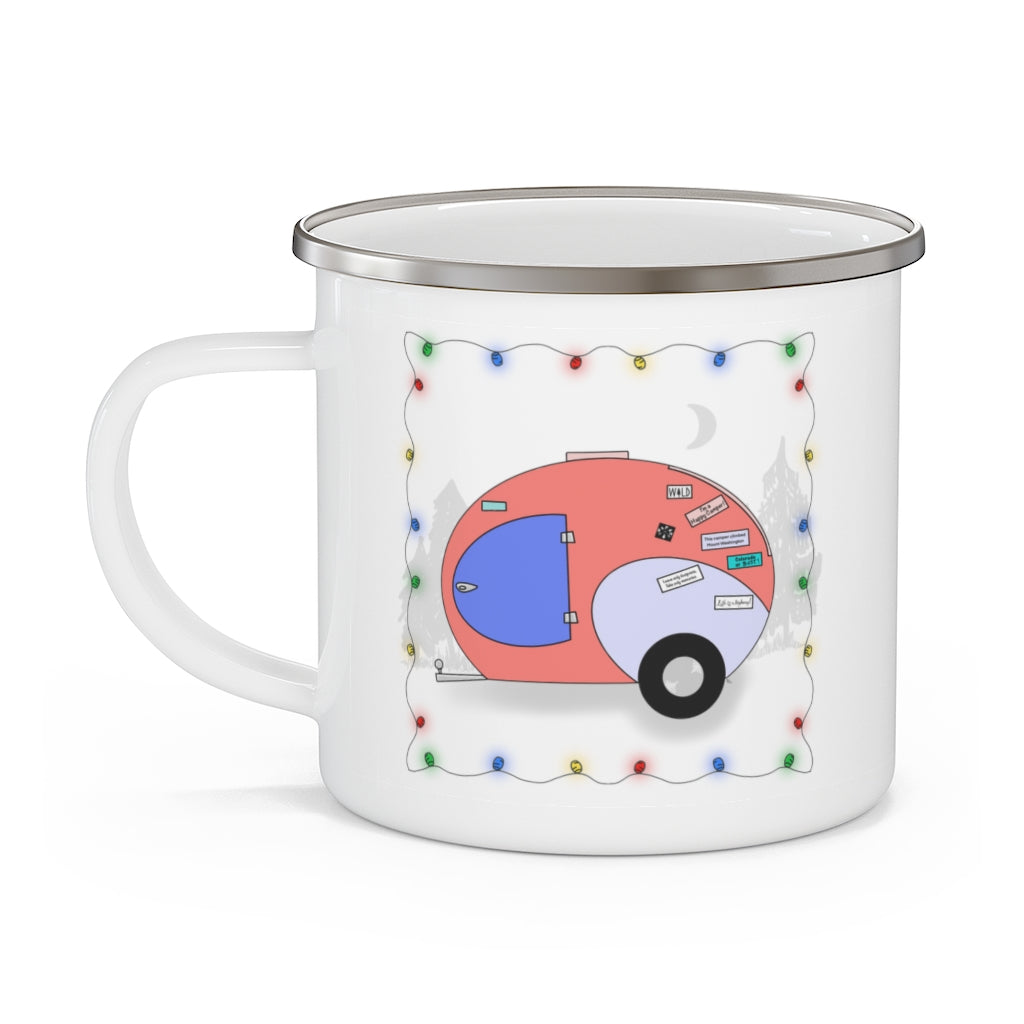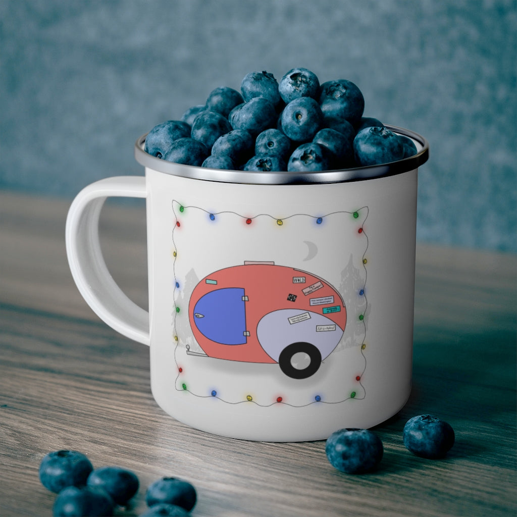 Get your hands on this durable enamel mug that holds 12 ounces of your favorite beverage. Add a personalized touch to your camper life drinks! Great for indoors and outdoors activities as it can keep up with the dirt and grunge of campsites. This sturdy and stylish cup is perfect for coffee, tea or even your morning cereal in the wild.