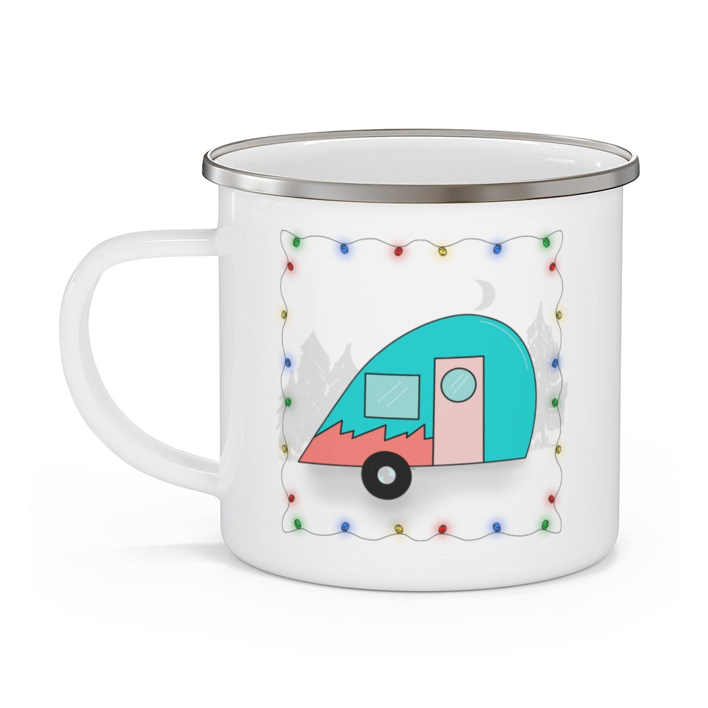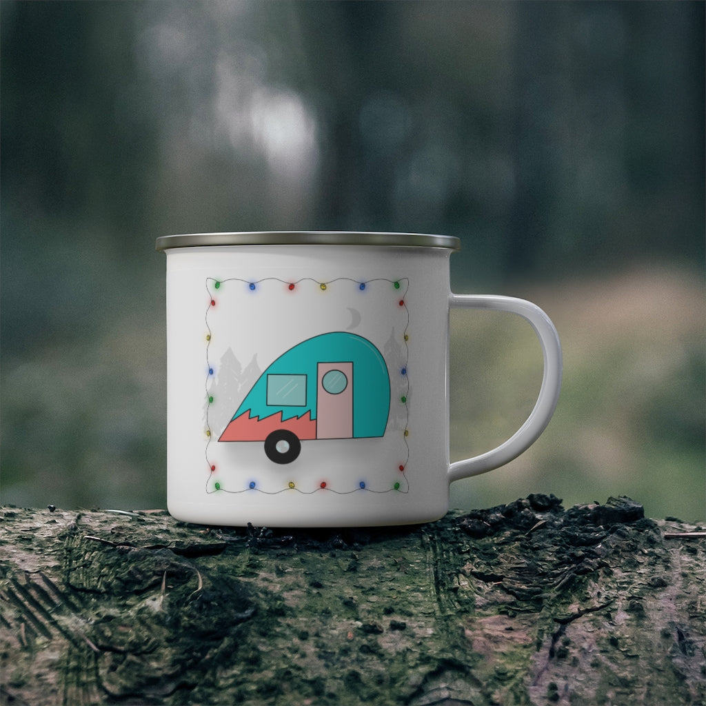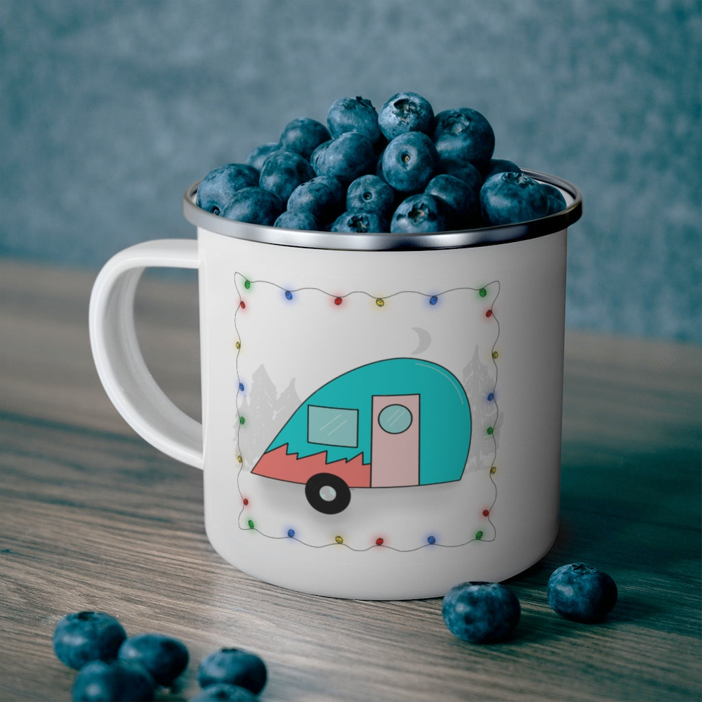 Get your hands on this durable enamel mug that holds 12 ounces of your favorite beverage. Add a personalized touch to your camper life drinks! Great for indoors and outdoors activities as it can keep up with the dirt and grunge of campsites. This sturdy and stylish cup is perfect for coffee, tea or even your morning cereal in the wild.