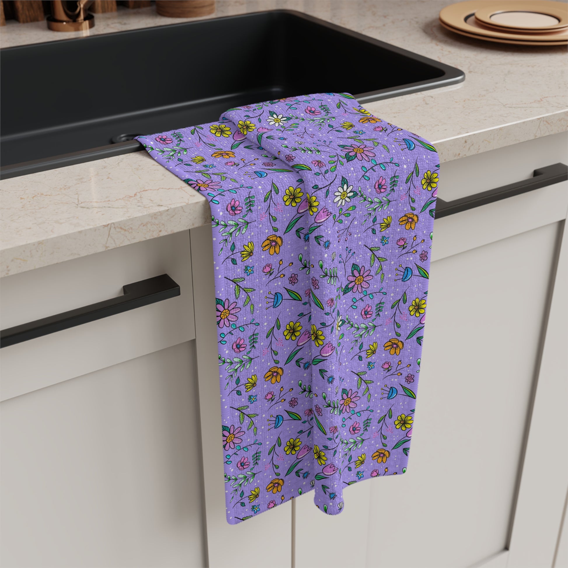 Spring Floral Toss - Purple - Soft Tea Towel