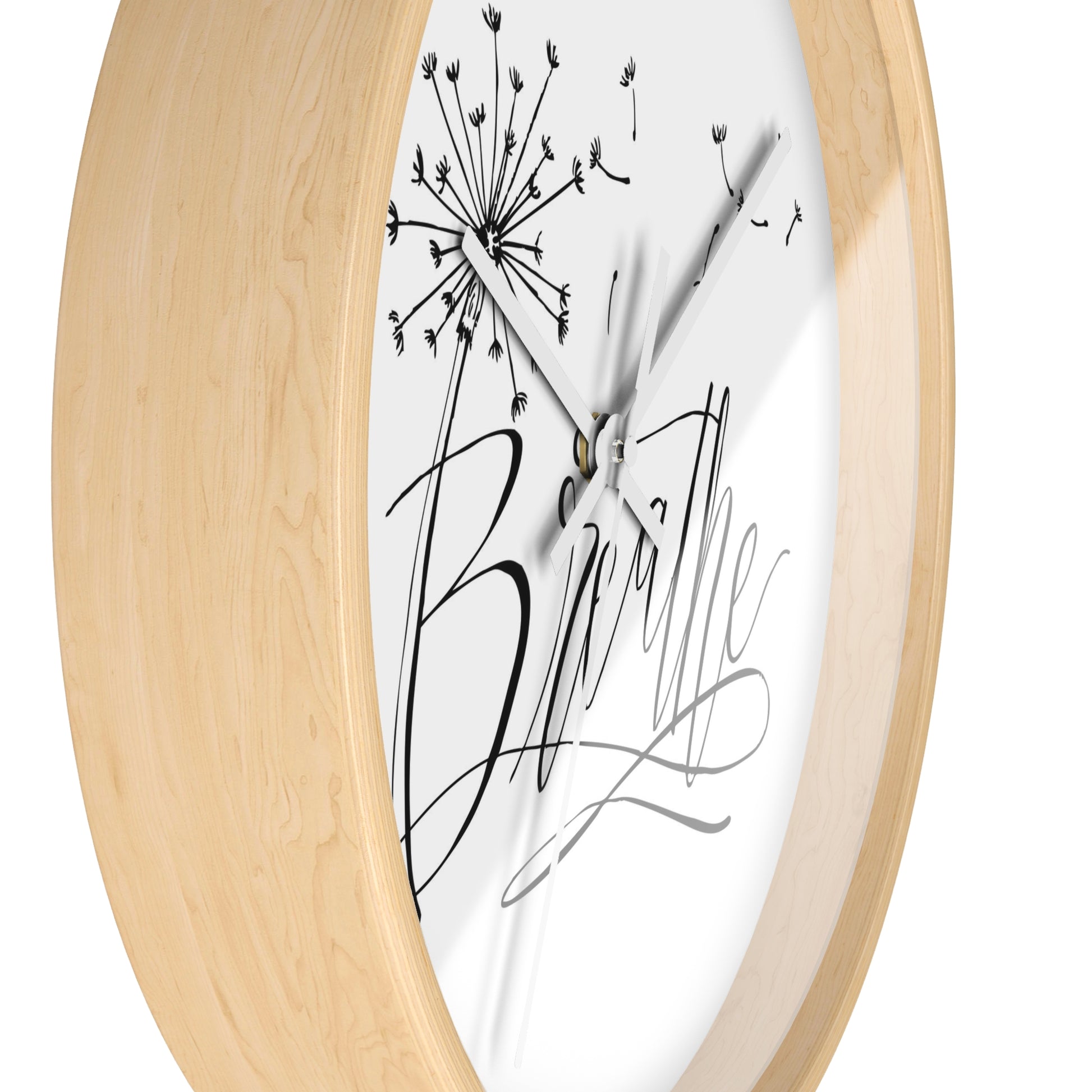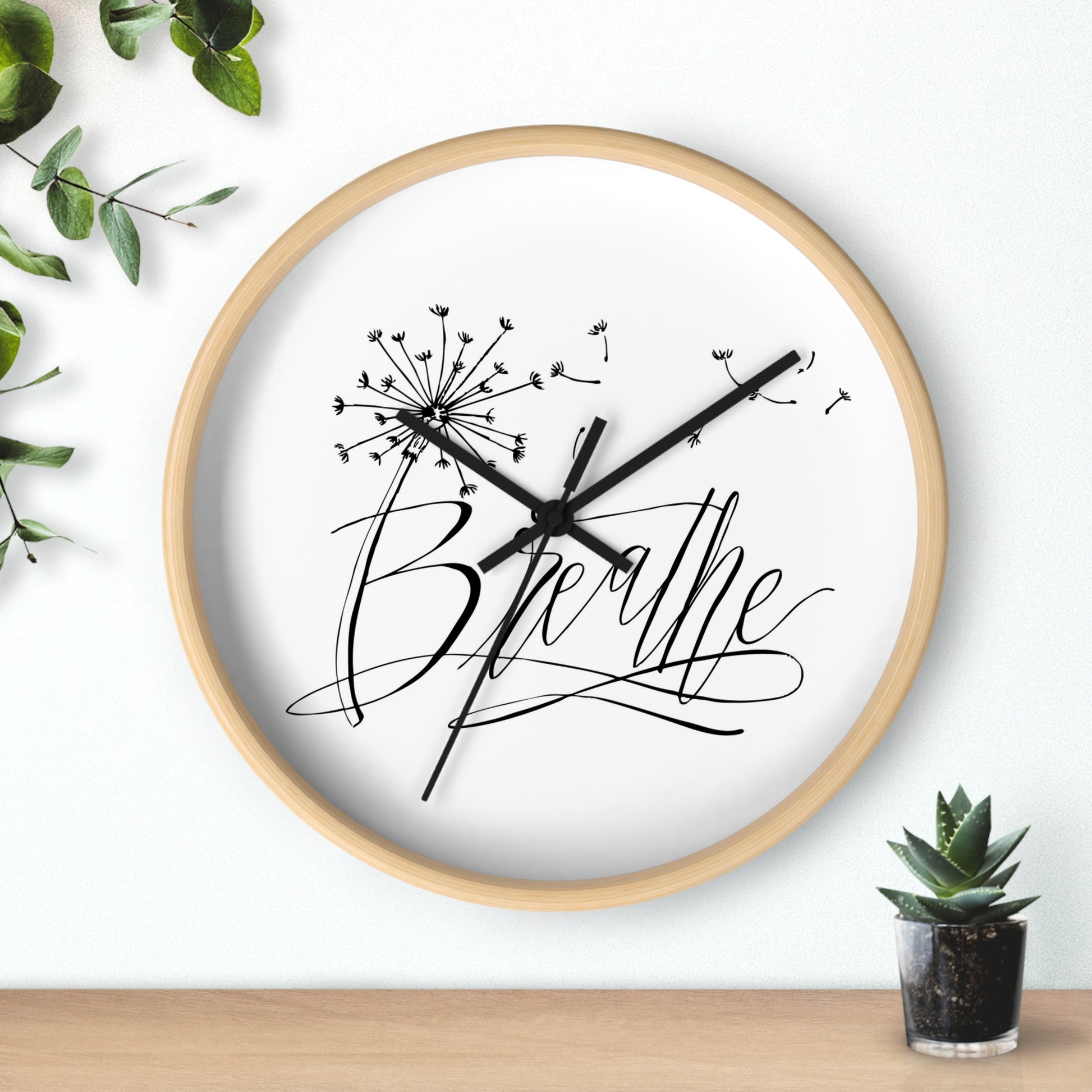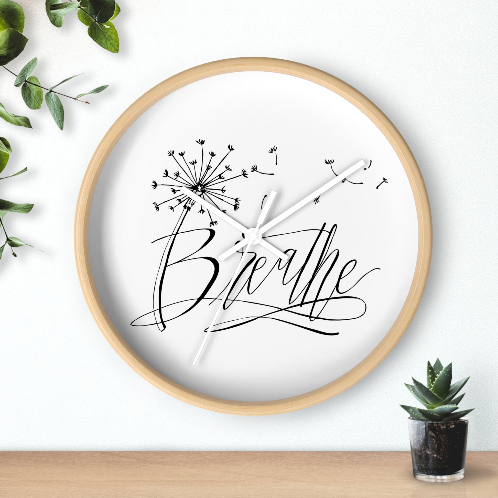 A modern, numberless clock designed with self-care in mind. In the rush of a busy day, a glance at the clock provides a gentle reminder to take a moment for you and just...breathe...